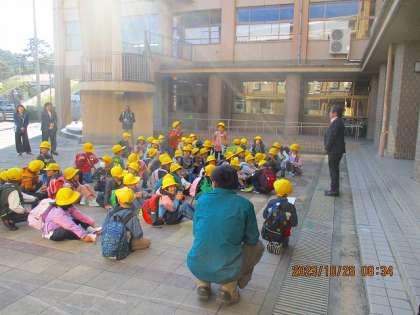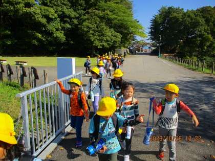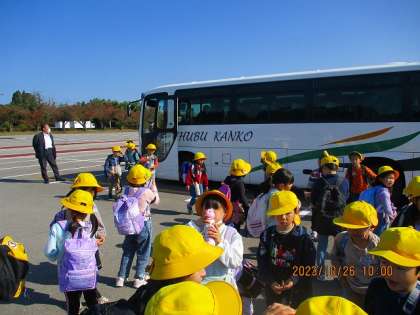 秋晴れの気持ちのよい天気となり、最高の校外学習日和となりました。出発式を行い、太閤山ランドへ!