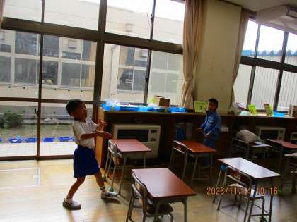 2時間目の後の大休憩は、子供たちの楽しみにしている大休憩の時間です。図書室を利用している子や、友達とフラフープをして遊ぶ子たちなど様々です。あちこちで、かわいい姿が見られます。今日は、教職員研修会で作成した竹とんぼを教室で紹介すると、休み時間に飛ばして遊ぶ子供の姿も見られました。