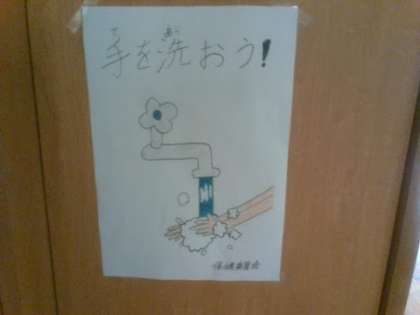 この写真は、手を洗おうというポスターです。