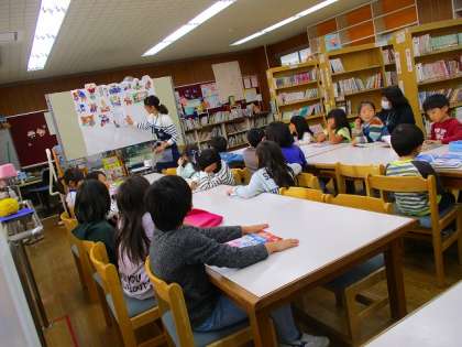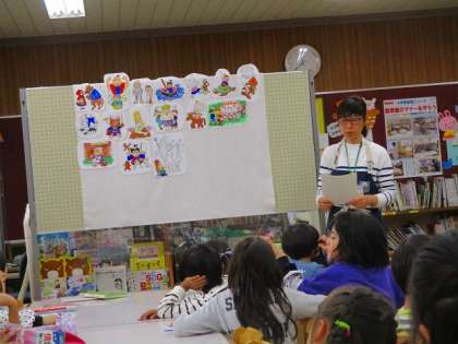 今日は、図書室の先生にパネルシアターで本の紹介をして頂きました。日本のお話や外国のお話など、今までに読んだこともあれば初めて知る本もあり、みんなわくわくして話を聞いていました。「保育園で読んでもらったことがあるよ」「あ、うちにもそのお話の本あるよ」と話している子供たち。中でも一番の驚きは、図書の先生の手作りのパネルシアターの絵でした。