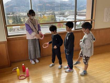 大休憩にクリスマスイベントがありました。輪投げをしたり、くじを引いたりして景品をもらえてうれしそうでした。