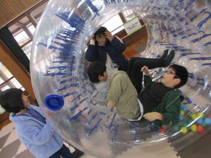 遊ぼ〜館では、学校にはないダイナミックな遊具を使って、思い切り遊びました。とっても寒い日でしたが、子供たちは汗だくになりながら楽しみました。