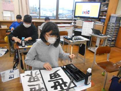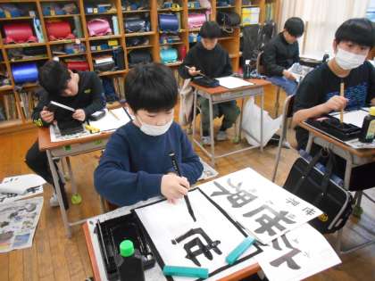 明日から12月、5年生もいよいよ書初の練習に入りました。