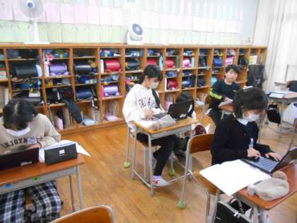 根拠を調べるときに、パソコンで法令を調べている子供もいました。