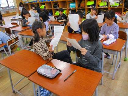 教室に帰ってから、友達の感想をペアや全体で聞き合いました。