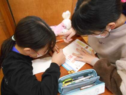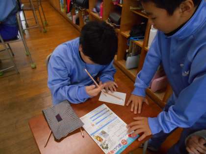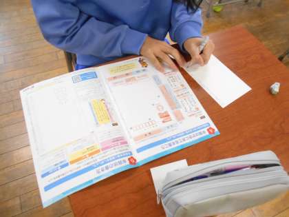 12月20日(水)5年生 今日の授業風景 公開日 2023/12/20 更新日 2023/12/20 5年生 国語の様子です。 日本郵便から学習のために寄付していただいた 年賀状を使って、祖父母や親戚に新年のあいさつを書きました。 はがきの書き方は3年生で学習していますが、 久しぶりに復習ができました。