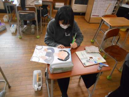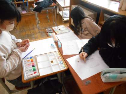 画用紙に下書きを書いたり、色をぬったりしました。