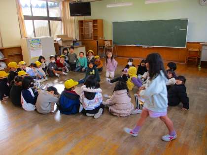 12月21日(木) 1年生 お楽しみ会 公開日 2023/12/21 更新日 2023/12/21 1年生 いよいよ2学期もあと二日となりました。冬休みが楽しみで待ちきれない様子ですが、学級のみんなともしばらく会えなくなるのは寂しいのではないかなと思います。そんな1組の子供たちと、今日の5時間目にちょっとだけお楽しみ会をしました。久しぶりのハンカチ落としでは、ついつい誰の後ろにハンカチが置かれたか言ってしまう子もいたので、みんなでルールを教え合いながら楽しい時間を過ごしました。