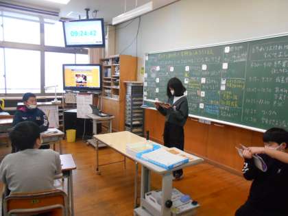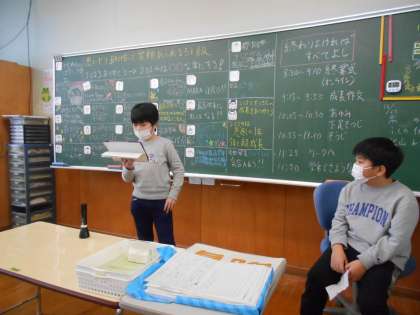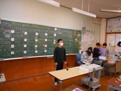 12月22日(金)5年生 今日の授業風景2 公開日 2023/12/22 更新日 2023/12/22 5年生 学活の様子です。 この学級は2学期の成長を仲間に伝えていました。 生徒指導主事の話の中に「相手のよさを見つける」とありましたが、 自分のよさや相手のよさで教室があふれていました。 17日間の冬休みを過ごし、 ますます成長した5学年に会えるのを楽しみにしています。