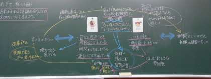 2組は、互いの良さを認め合うことで、高まっていた資料から、自分たちの普段の姿を考えました。