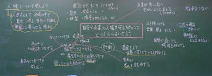 3組は、人権の考え方から、自分や友達の人権を守る方法を具体的に考えていきました。
