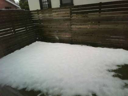 家の外を見たら、いつのまにかけっこうつもっていました。