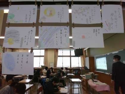 子供記者★12月22日(金)6年生「みんなの俳句」 公開日 2023/12/31 更新日 2023/12/31 子供記者のページ これは6年1組が秋に作った俳句です。 きれいな俳句ばかりでした。 子供記者 6年1組 S・K