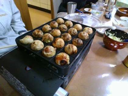 今日、いとこと、お母さんの友達が来て、たこ焼き・お好み焼きパーティーをしました。