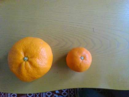 お家にある最大と最小のみかんです。 大きさが全くちがいます。
