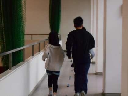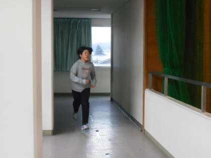 一部の子供たちは、体育館のギャラリー走に取り組んでいました。