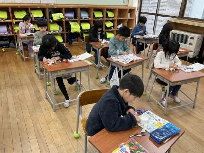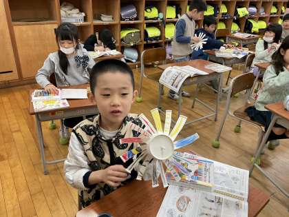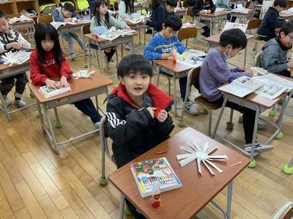 紙コップを切ったり折り曲げたり好きな色を塗ったりと、楽しく活動していました。