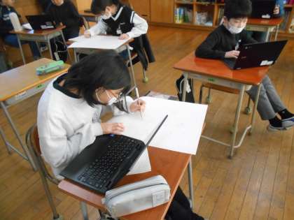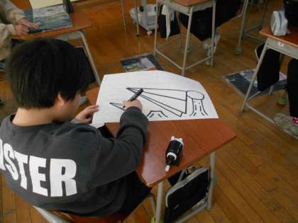 今回は「大空へ」のテーマでステンシル版画を行っています。