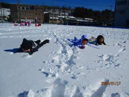 1月17日(水) 1年生 ふゆをたのしもう 雪遊び その1