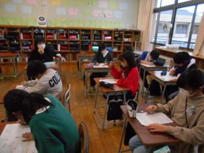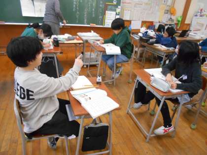 1月18日(木)5年生 今日の授業風景 公開日 2024/01/18 更新日 2024/01/18 5年生 算数の様子です。 今日は割引や割増の学習でした。 2割引きは8割で買う、25%オフは75%で買う、 消費税込みの値段は1.1をかける・・・など、生活と関わらせて学習しました。 スーパーやショッピングセンターへ行ったとき、 お子さんが計算できるか確かめてみてください。
