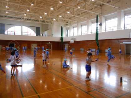 今日の体育では、なわとびの練習をしました。