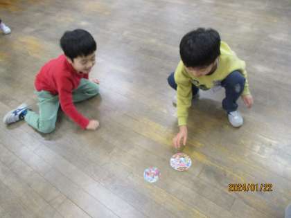 遊び方を友達や先生に教わりながら、昔の遊びを楽しんでいます。