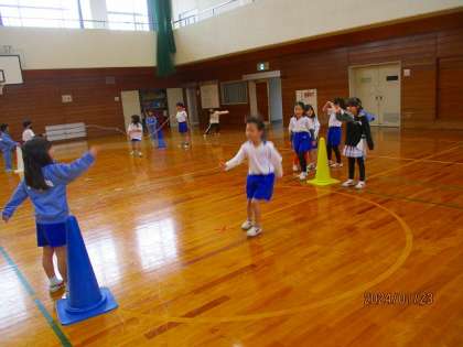2月の大なわ大会に向けて、グループごとに練習しています。