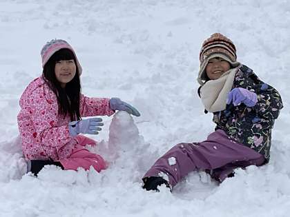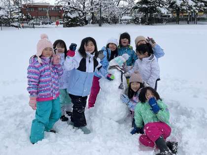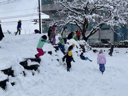 雪だるまを造ったり高いところから跳んでみたりするなど、雪があるからこそできる遊びを楽しんでいました。
