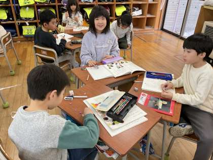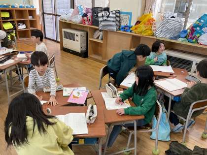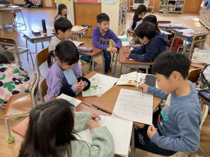 学習参観に向けて、グループで相談しながら準備を進めています。