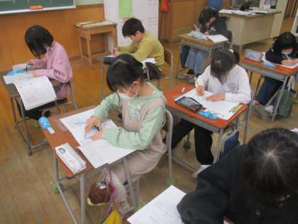 算数の授業の様子です。昨日から算数ではクラス分けを行い、3クラスで授業を進めています。