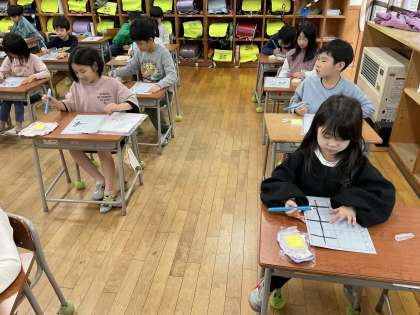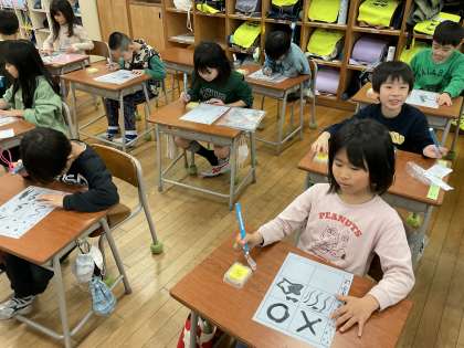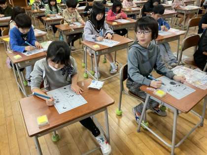 鉛筆とは違う感覚に、子供たちは楽しんで取り組んでいました。