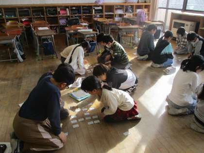 今日は中学年の百人一首大会がありました。今日までに覚えてきた歌を取ろうと、耳を澄ませて聞いていました。