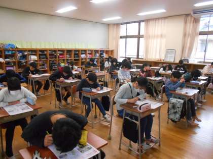 上の写真は3組の様子で、前単元のカラーテストを行っていました。
