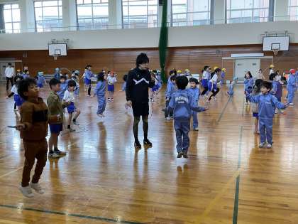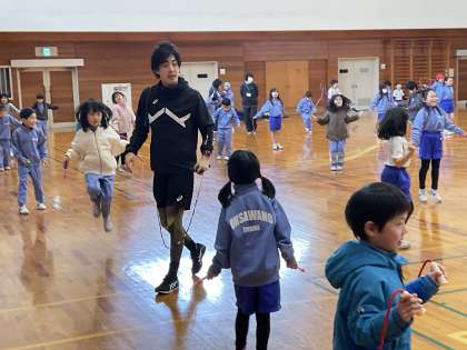 講師にヒジキ先生を招いて、なわとび教室を行いました。「交差跳びができるようになった」「前よりも跳べる回数が増えた」と喜んでいました。