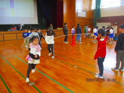 練習よりもよい記録が出ると、大きな歓声が上がっていました。大会後、子供たちに感想を聞くと「楽しかった」だけでなく「悔しかった」「2年生、すごかった」という言葉が聞かれました。記録は、2年生には届かなかったけど、2年生のようになりたいという気持ちがより一層強くなりました。