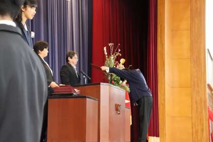 緊張しながらも、胸を張って堂々と入場しました。1部では、卒業証書を立派な姿で受け取りました。