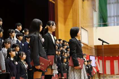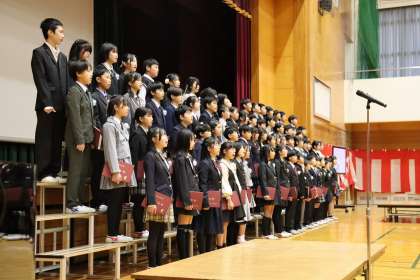 卒業式の2部では、子供たちの思いを呼びかけや合唱で伝えました。