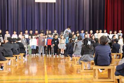 最後に歌った校歌は、体育館中に響き渡り、全校みんなで1年生の入学をお祝いすることができました。