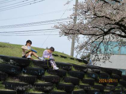 花や虫など、グラウンドや池の周りには春だから見られる景色がたくさんありました。