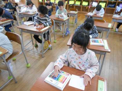 4月11日(木) 1年生 図画工作科「きらきらを えがこう」