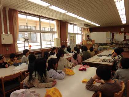 3年生になって初めての図書室利用なので、最初に図書室の使い方を確認しました。その後、司書の先生から、読み聞かせをしていただきました。『杜子春」という中国のお話です。子どもたちは、食い入るようにお話を聞き、物語の面白さを味わっていました。