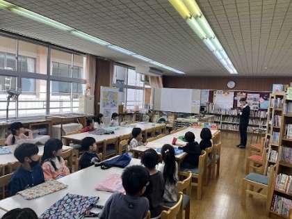 初めて本を借りた子供たちは、さっそく休み時間に本を読んでいました。