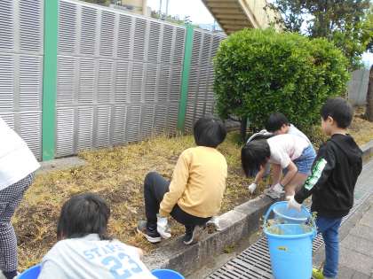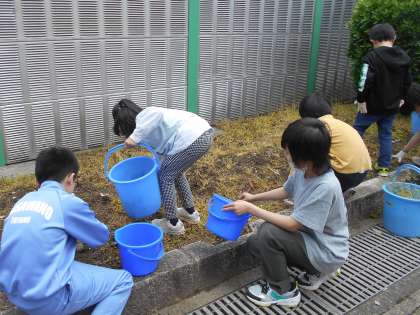 「大きいスイカにしたい」「猿に食べられないようにしないと」と、いろいろな意見が出ました。また、野菜のことを思いながらみんなで草むしりに励みました。