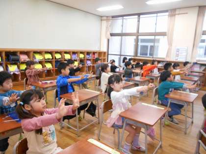 4月25日(木) 1年生 書写「しょしゃたいそう」