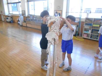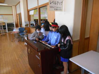 大休憩は先ほどの人体模型を触ったり、音楽に親しんだりしている子供がいました。