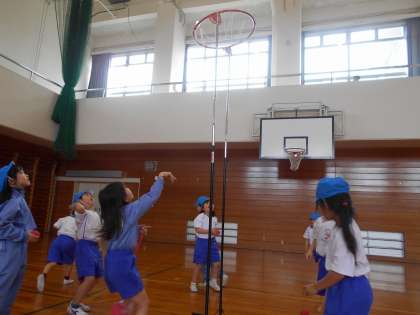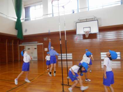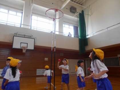 上に投げる練習をし、少しずつ、投げ方のコツをつかんできたようです。