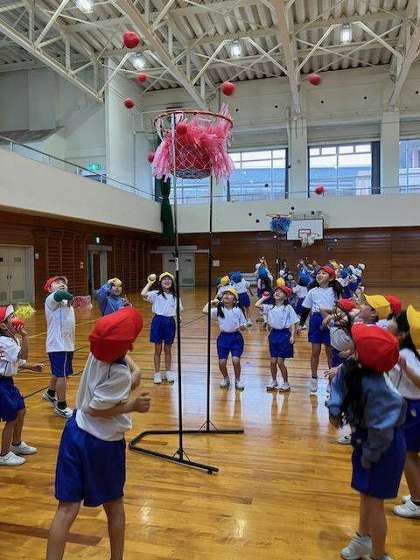 今日も玉入れの練習をしました。 昨日よりもまっすぐ上に投げることができていました。