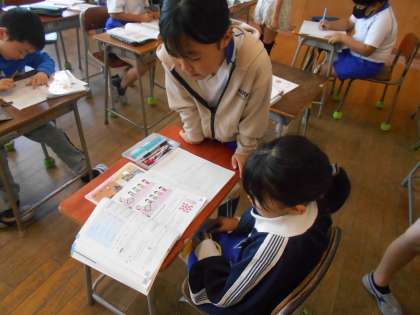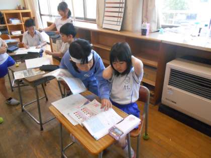 写真は問題を友達と解き会っている様子です。教え合っている姿がすてきですね。