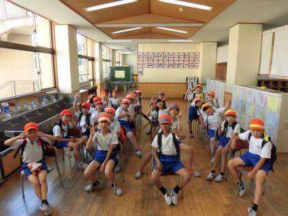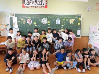 運動会の出発前と終了後の集合写真です。やりきった顔、悔しくて泣いている顔、それぞれの思いが、表情に出ています。暑い中、よく頑張りました!