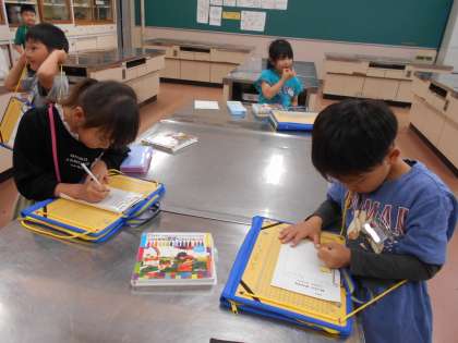 「これ、家にもある!」「こんなの、初めて見た!家庭科の授業が楽しみだな。」と、楽しそうに見つけたものをスケッチしていました。